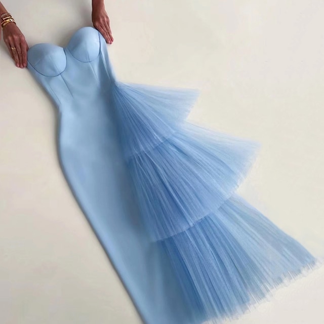 Designer Fabric Blue Fashion Suspender Dress
