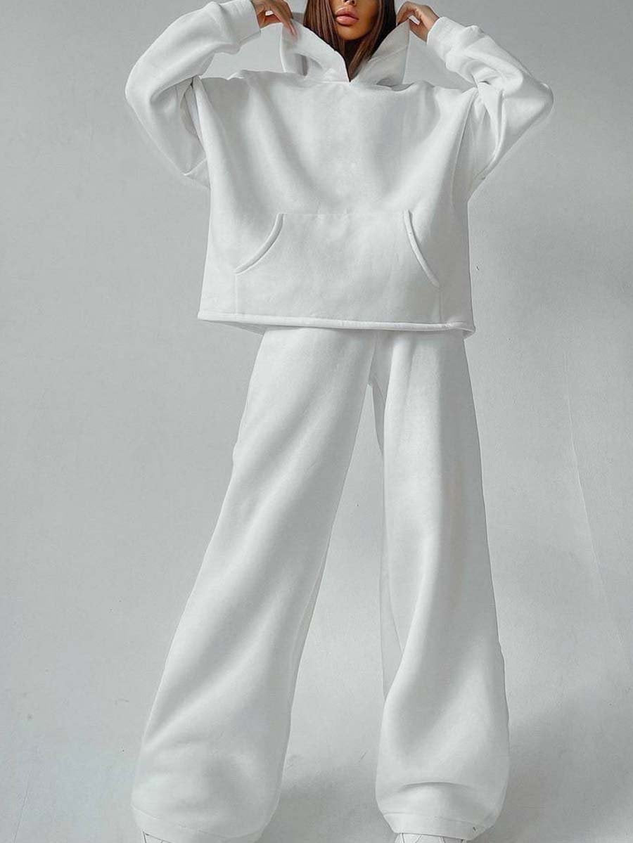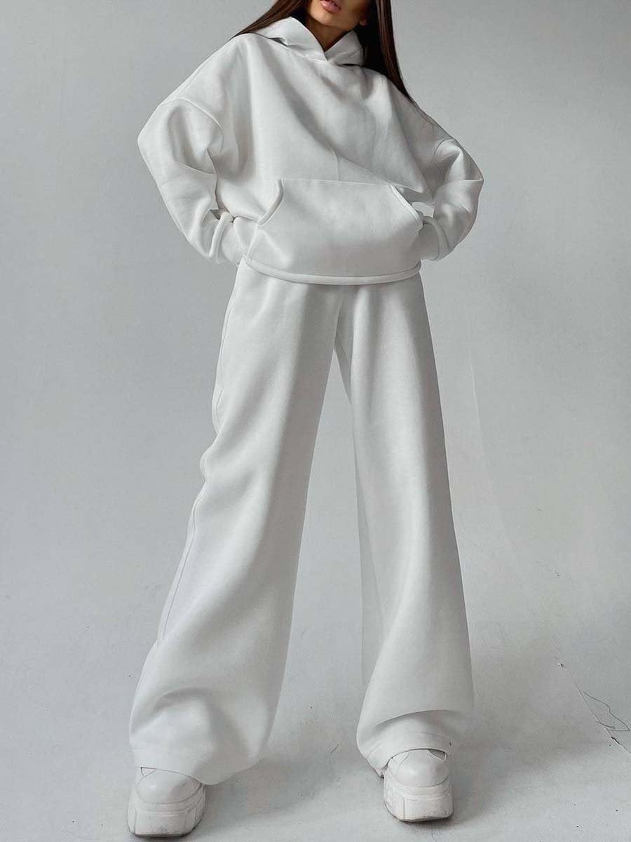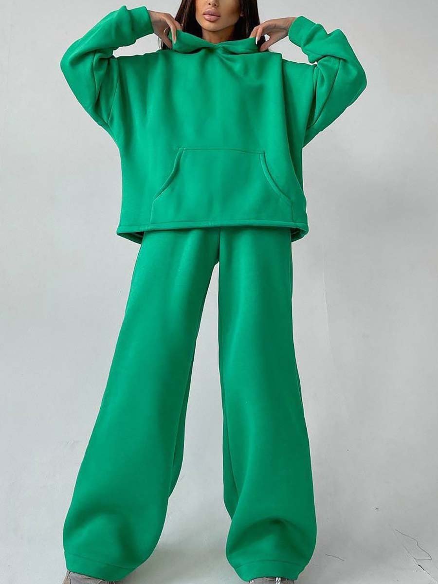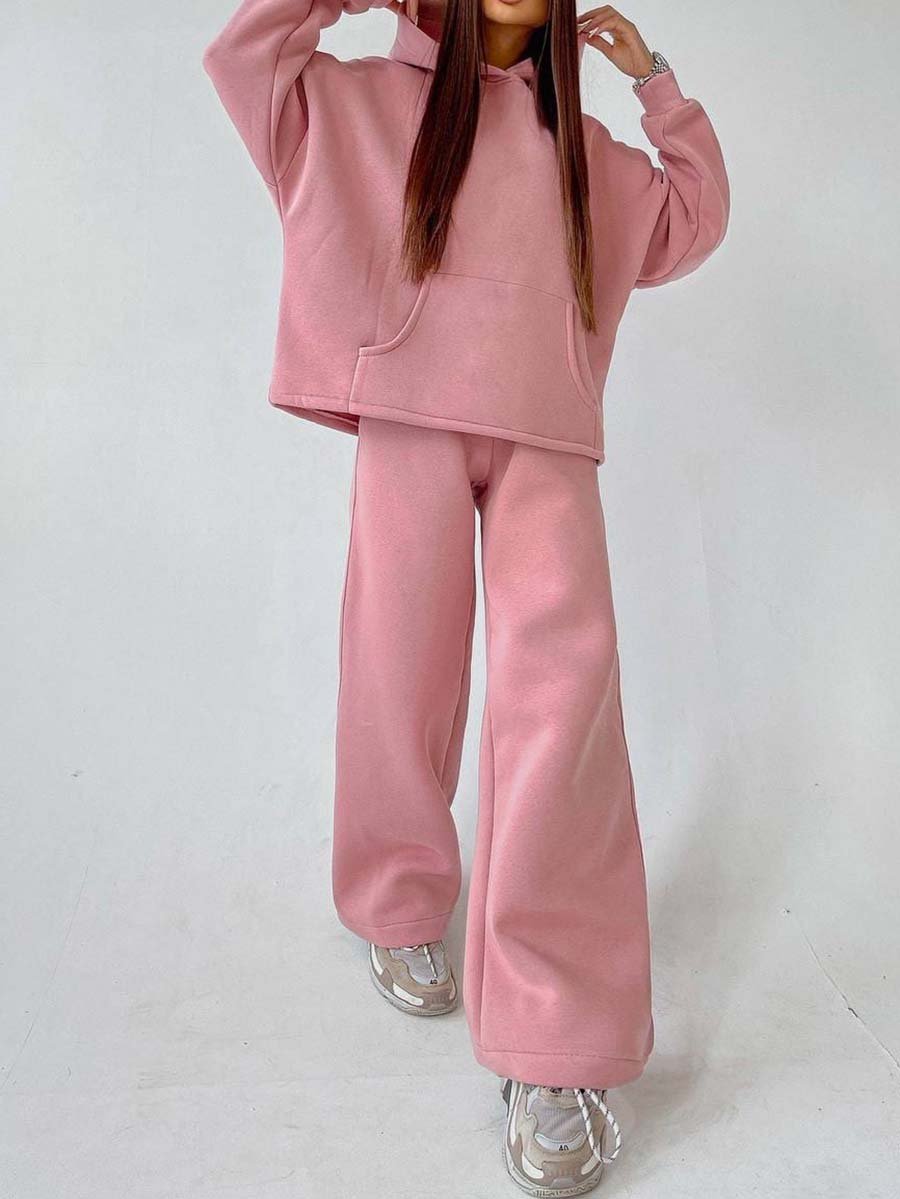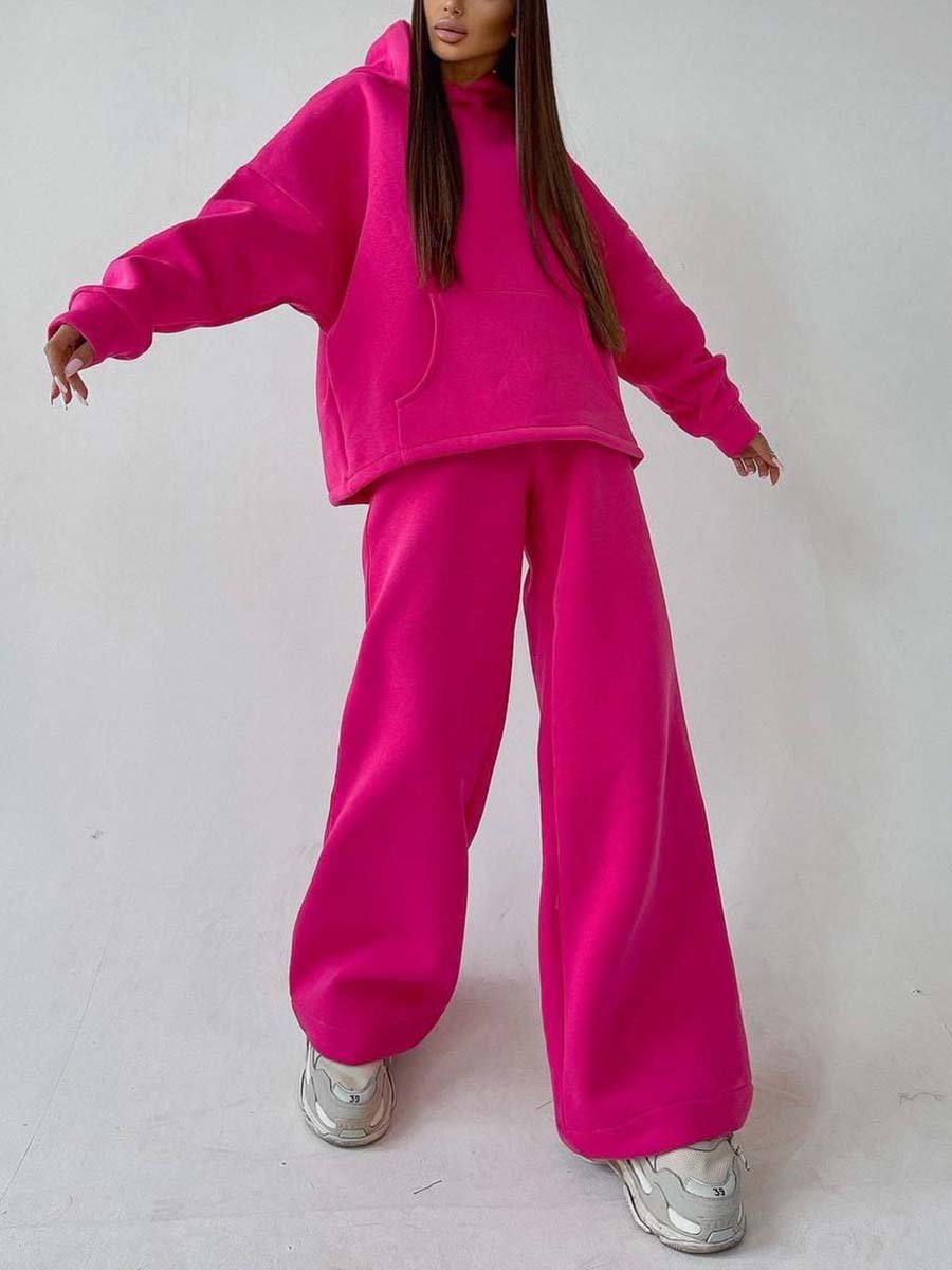 Two-piece suit of solid color hoodie with pockets and sweatpants