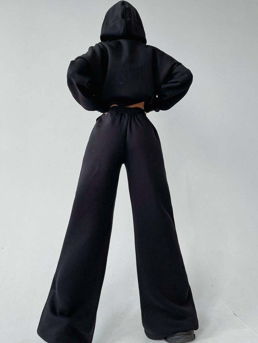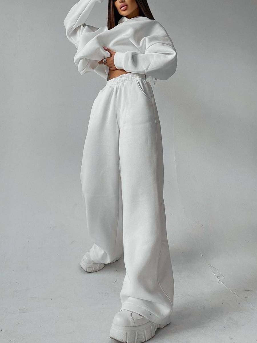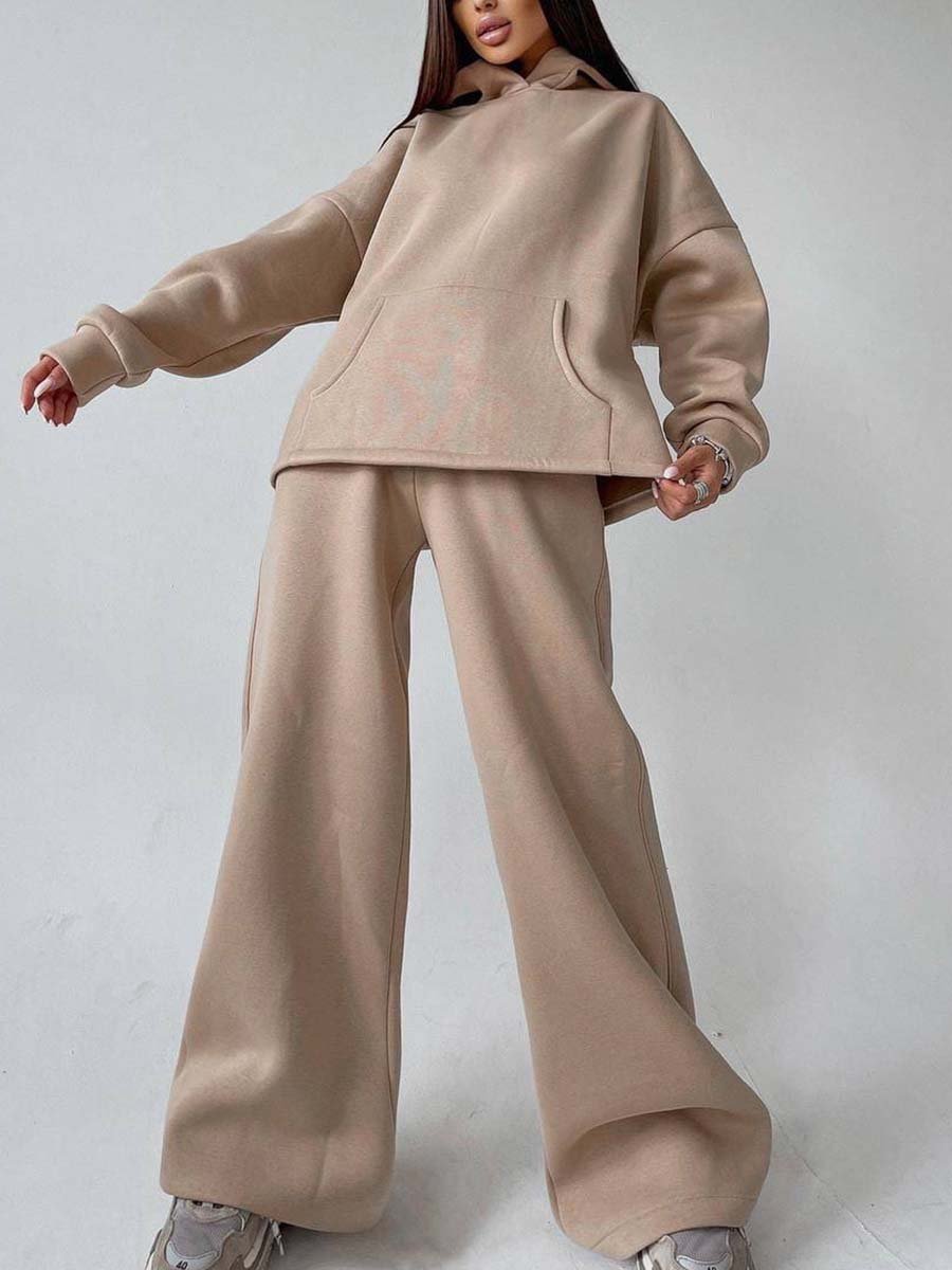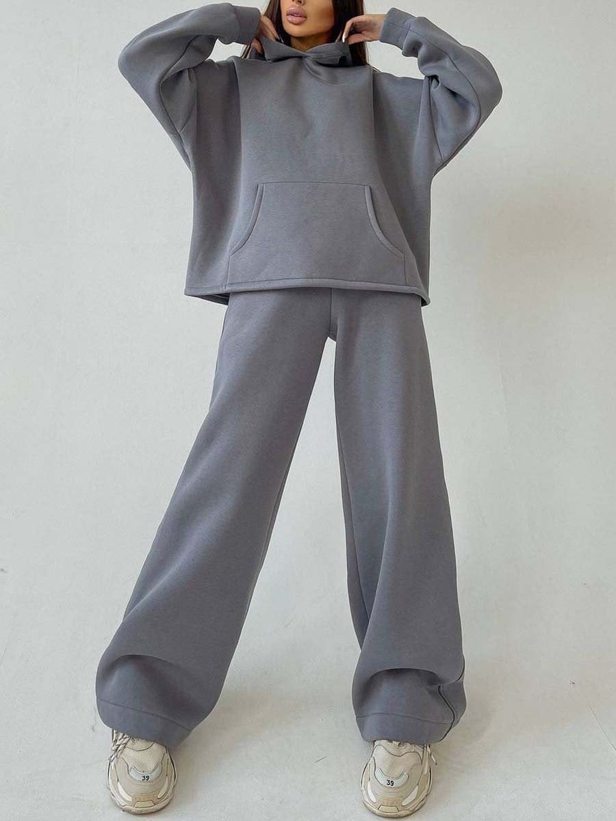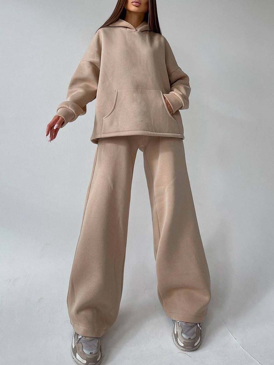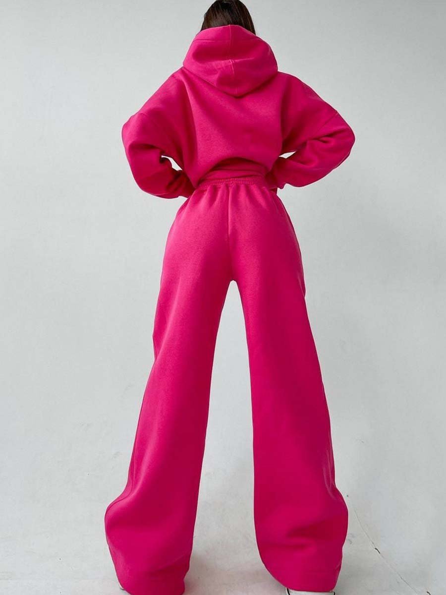 Two-piece suit of solid color hoodie with pockets and sweatpants