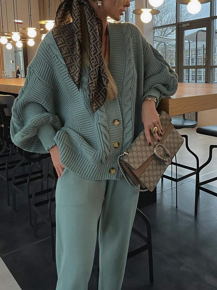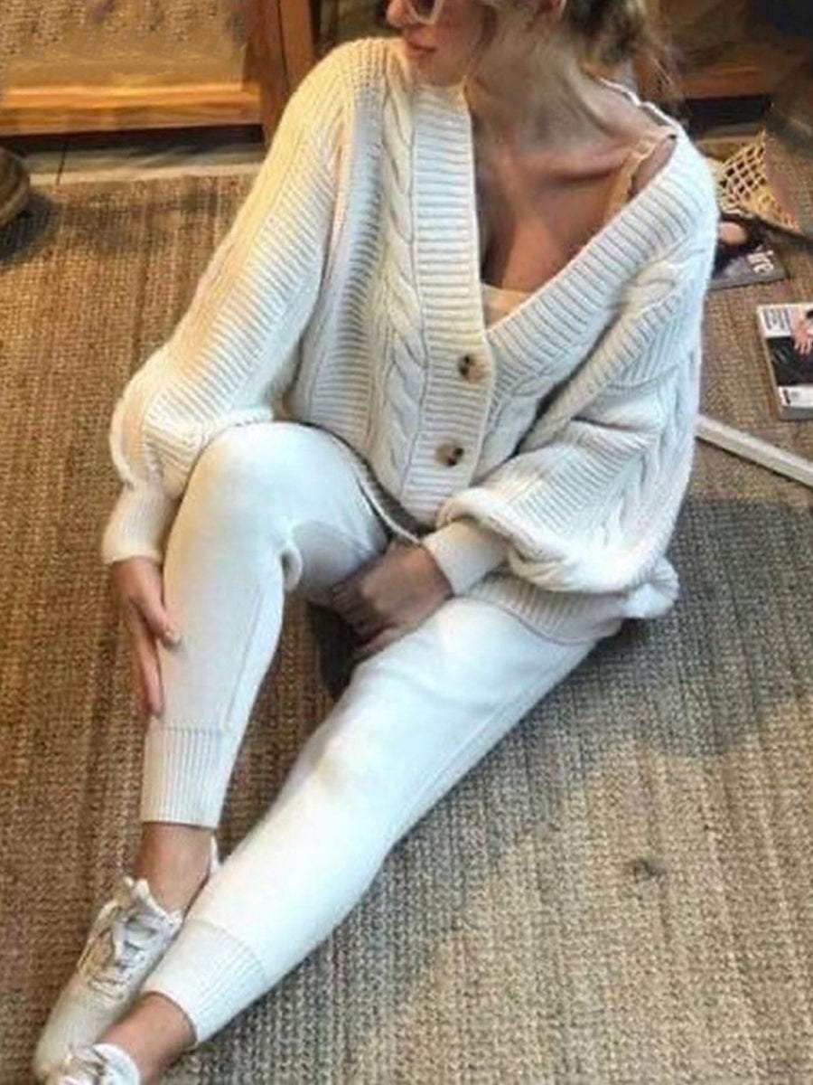 Fashion V-neck Solid Color Suit Sweater