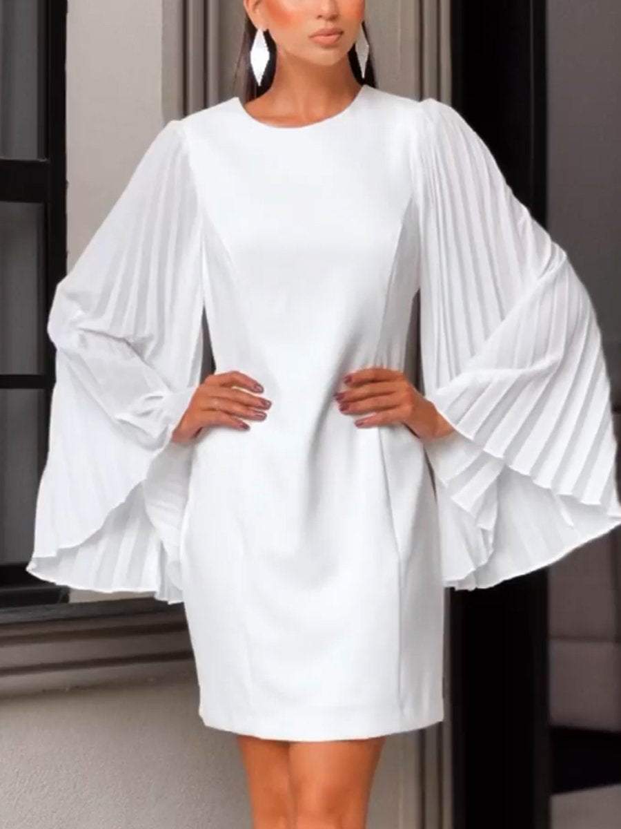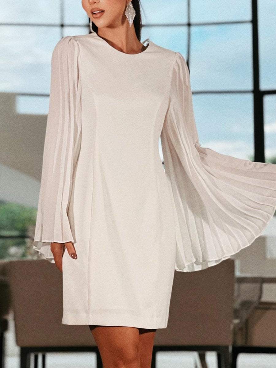 Round Neck Pleated Flare Sleeve Short Party Dress