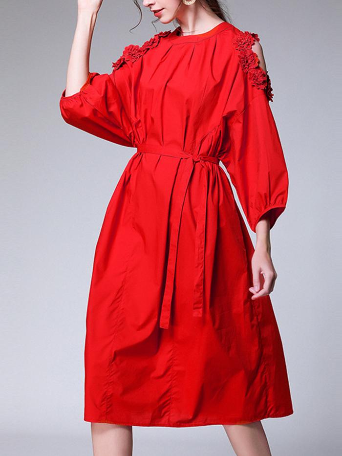 Round Neck Loose Flare Sleeve Dress