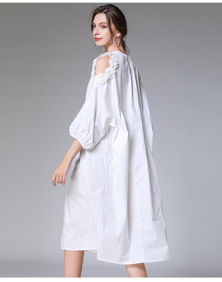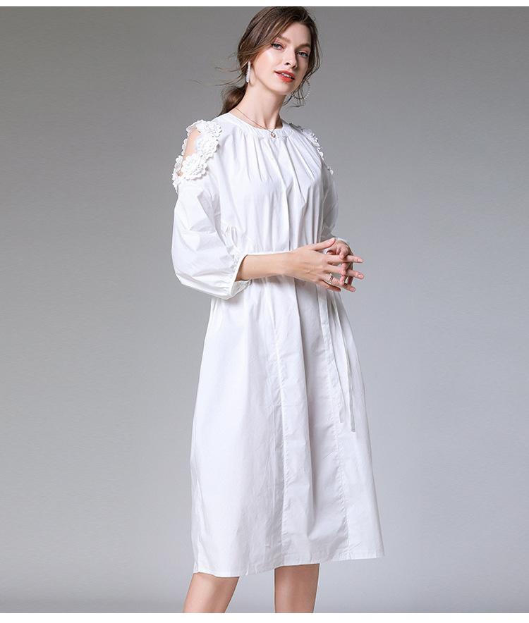 White V-neck Long-sleeved Simple Dress In The Long Section