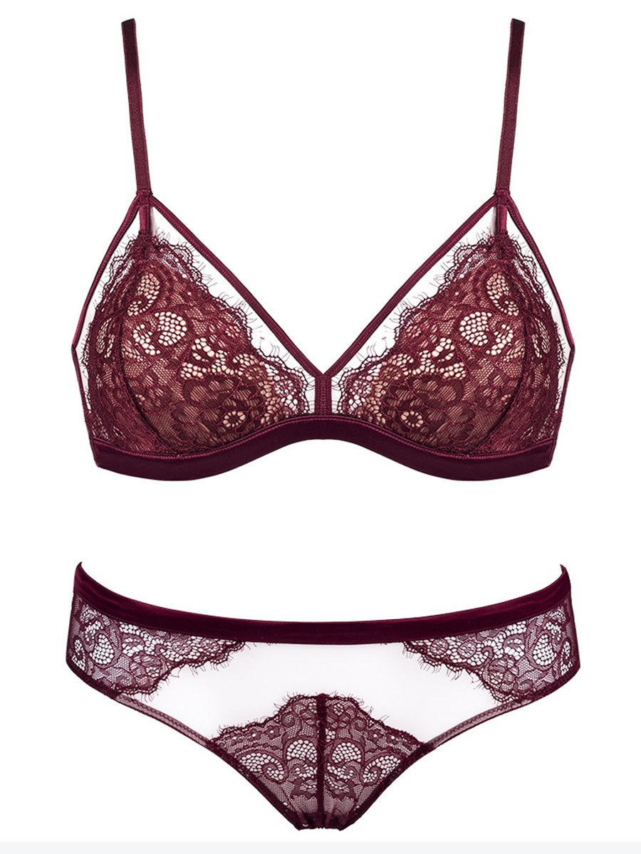 Sexy Lace Thin Section Gathering Nipple Underwear Set