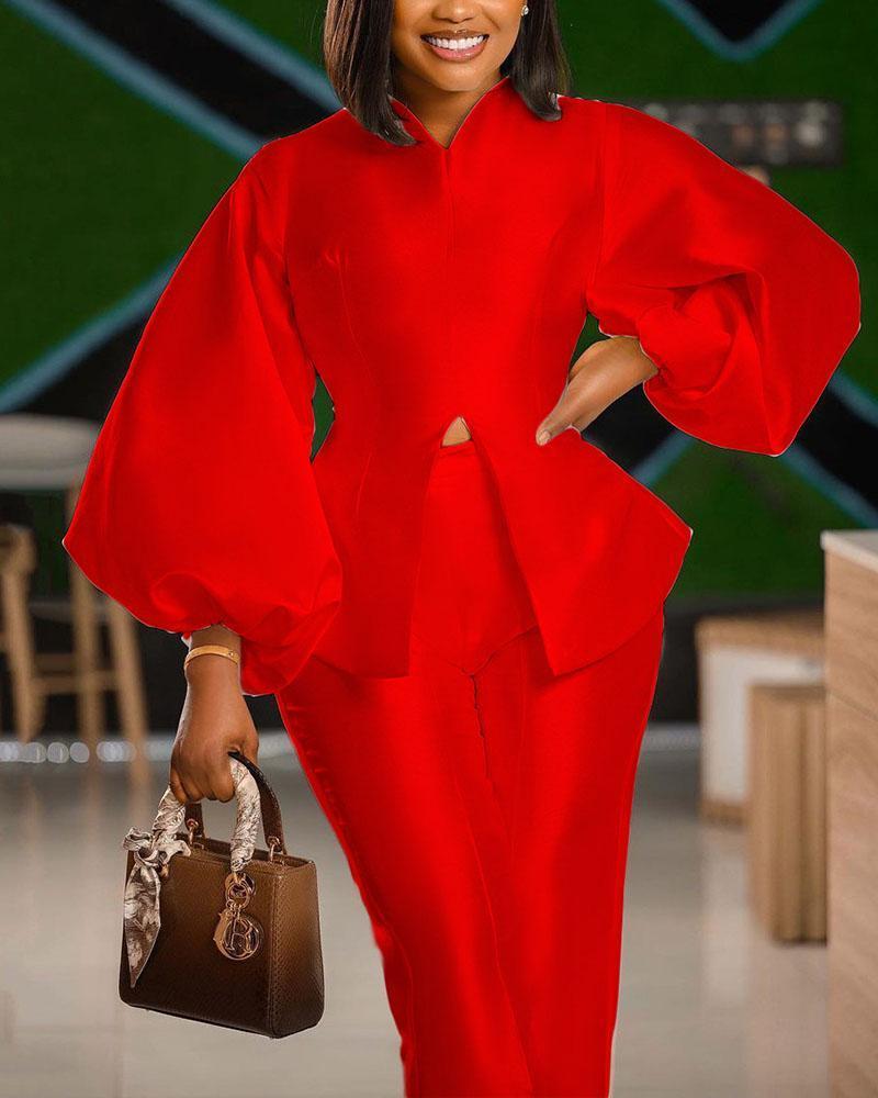 Elegant Pleated Long Sleeve Black Two Piece Suit