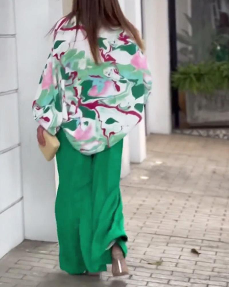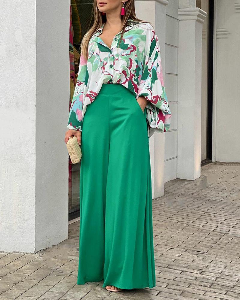 Casual Print Shirt & Wide Leg Pants Two-Piece Set