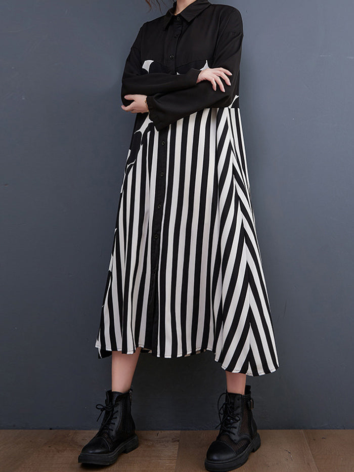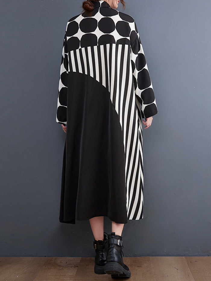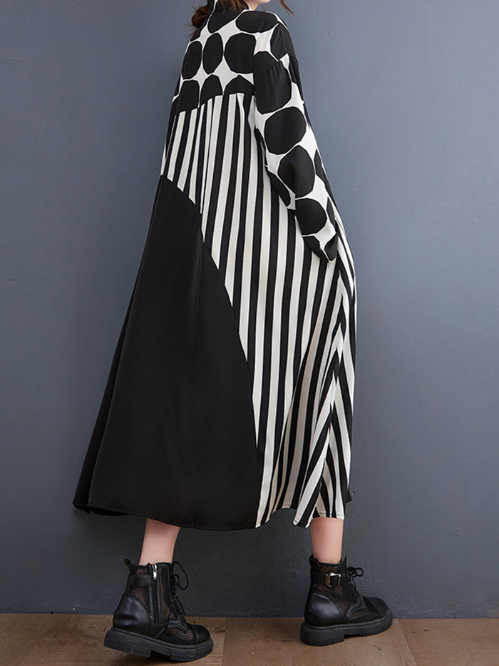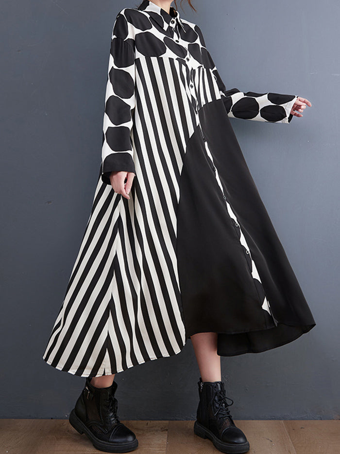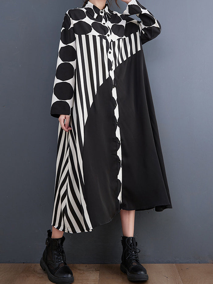 Fashion Polka Dot Shirt Colorblock Dress