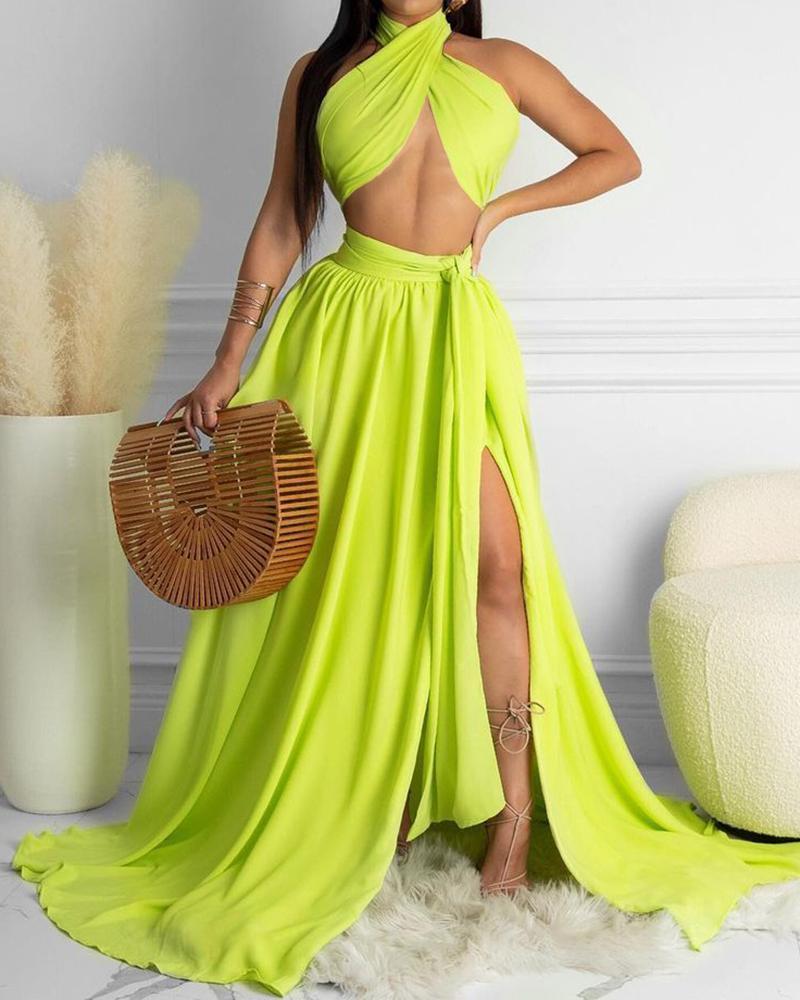 Solid color backless maxi dress