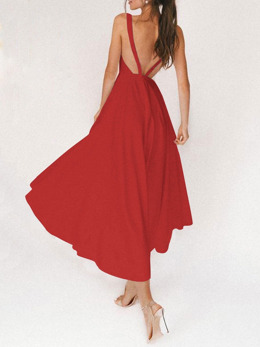 Elegant SATIN Wrap Chest Sleeveless Mid Length Evening Dress