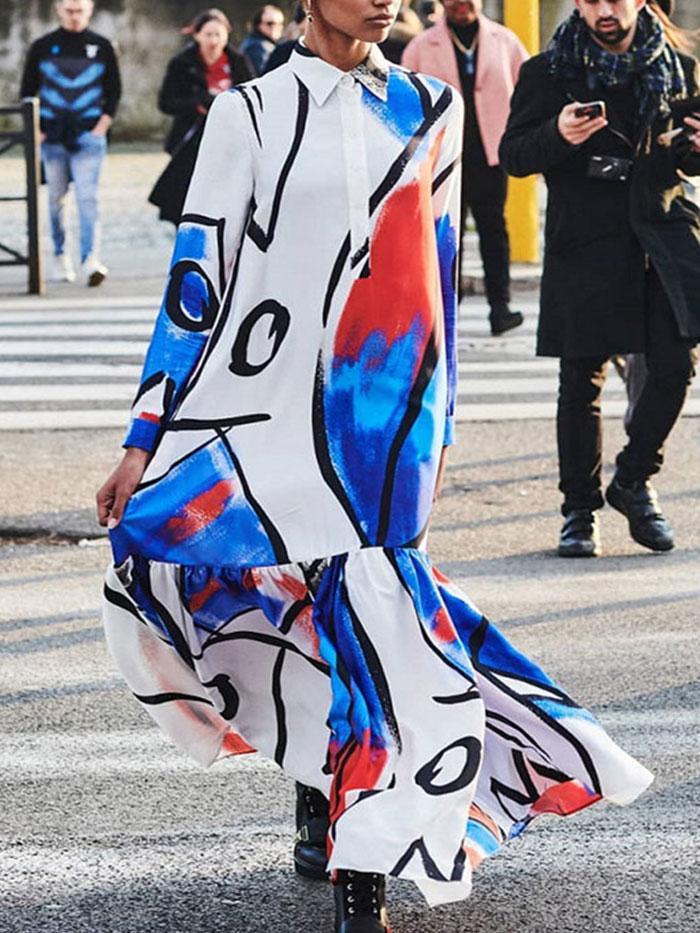 Fashion new multicolor stitching long-sleeved loose-fitting printed dress