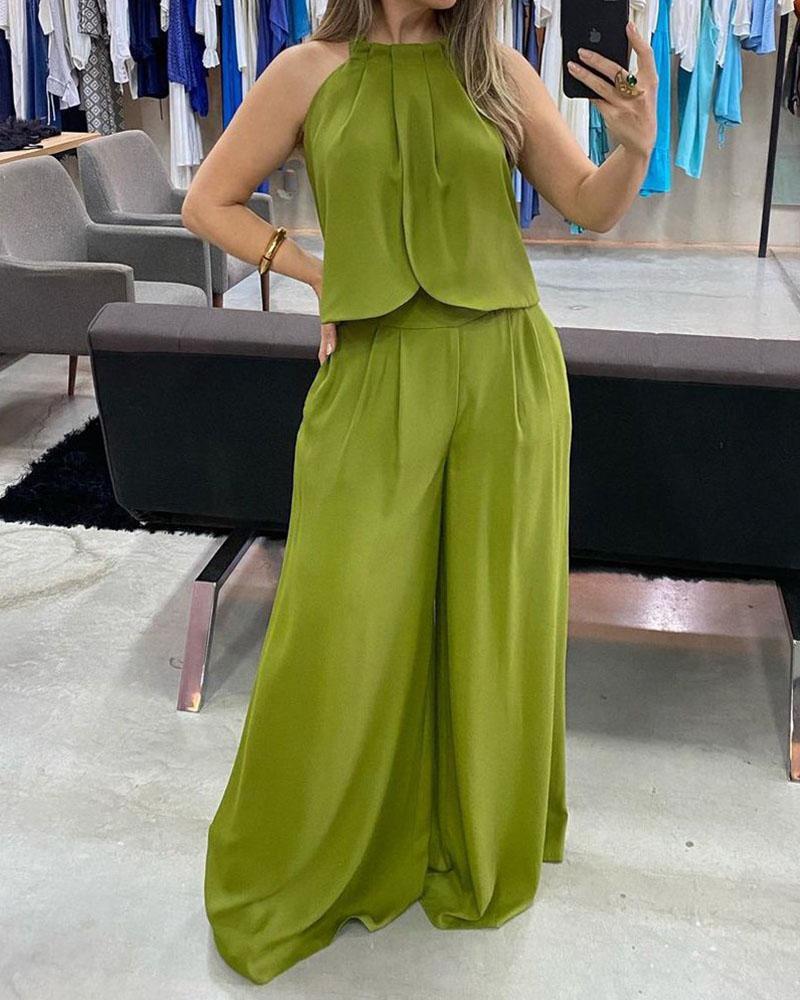 Halter Design Top Drop Pants Suit