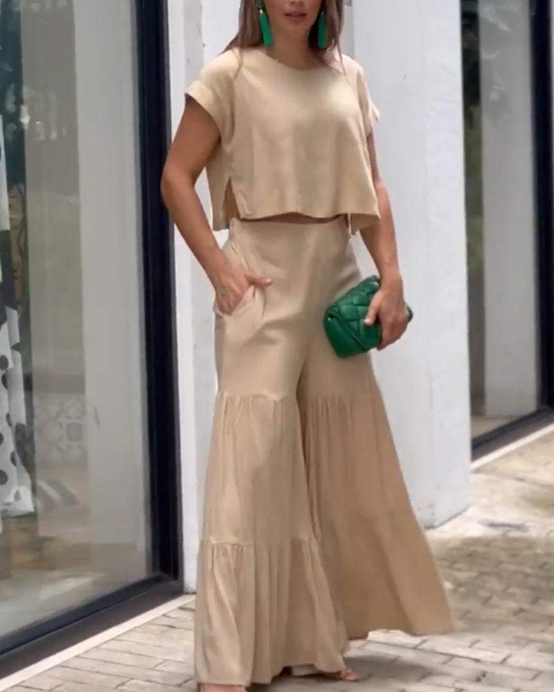 Simple Loosen Solid Cap Sleeve Knee Dress