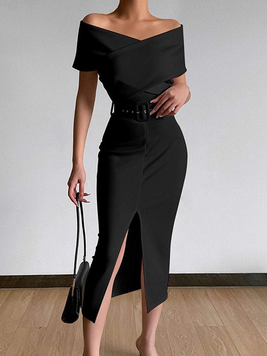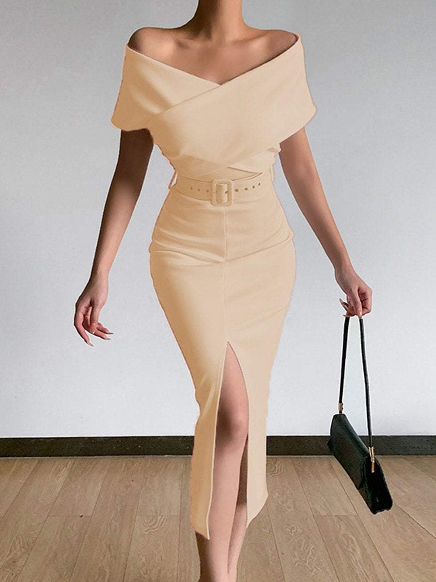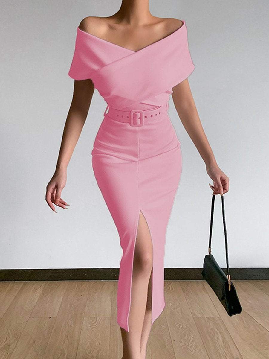 Fashion Sling Side Slit Tight-fitting Multi-color Mid-length Gown