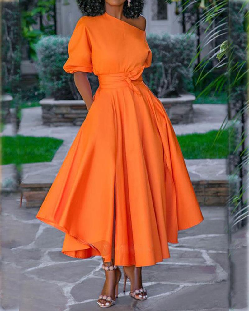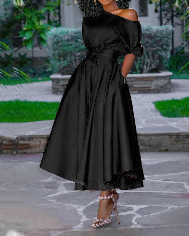 Elegant SATIN Wrap Chest Sleeveless Mid Length Evening Dress