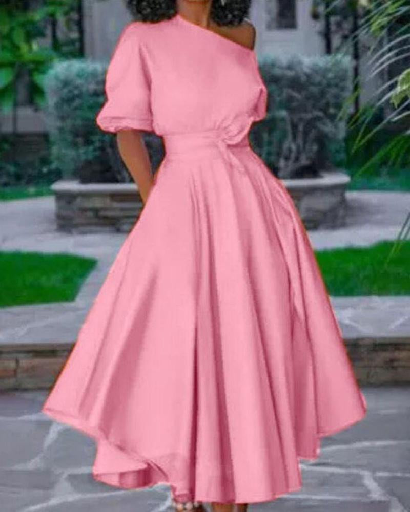 Simple Loosen Solid Cap Sleeve Knee Dress