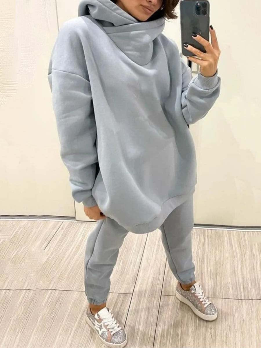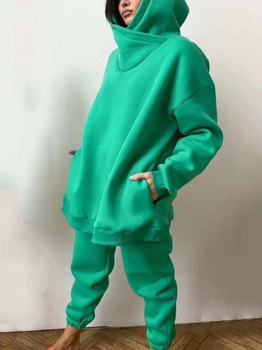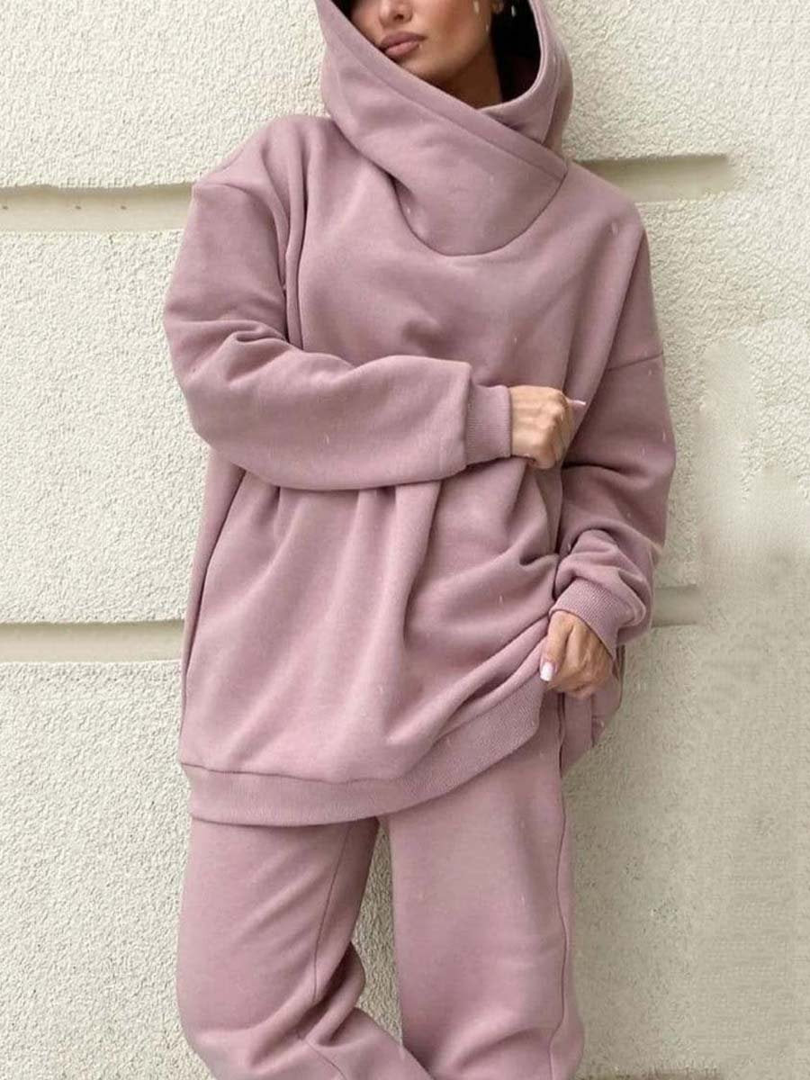 Two-piece suit of solid color casual hoodie and sweatpants