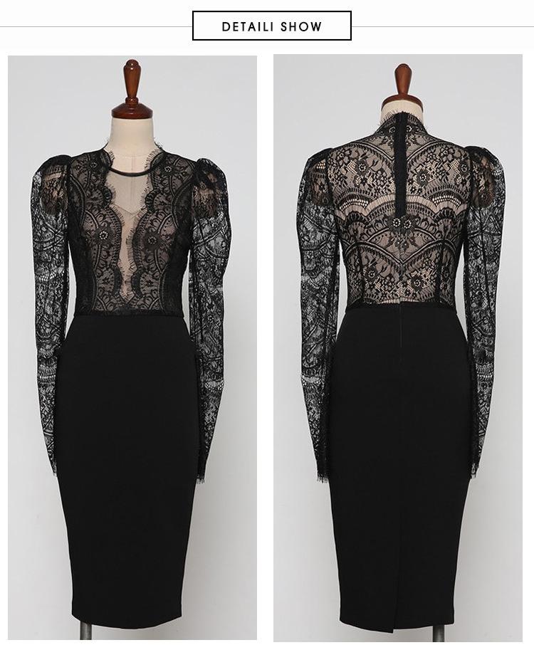 Pattern: plain Process: Printing/Dyeing Skirt length: long skirt Skirt type: one-step skirt Collar type: V-neck Sleeve length: long sleeve Waist type: high waist Clothing placket: zipper Main fabric composition: polyester fiber (polyester) The content of main fabric ingredients: 30%-50% Colors: White, Black Size: S, M, L, XL Profile: H type