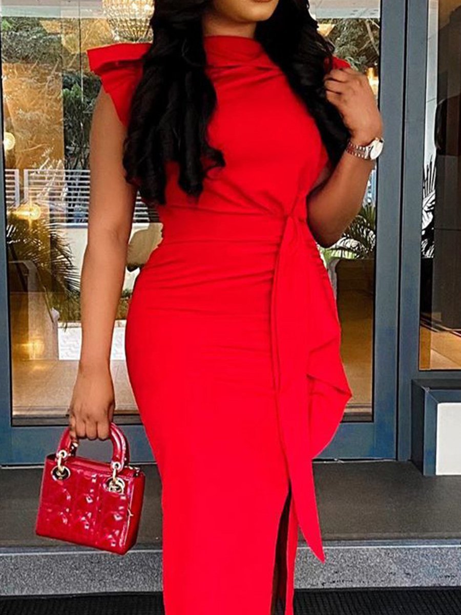 Fashion Sling Side Slit Tight-fitting Multi-color Mid-length Gown