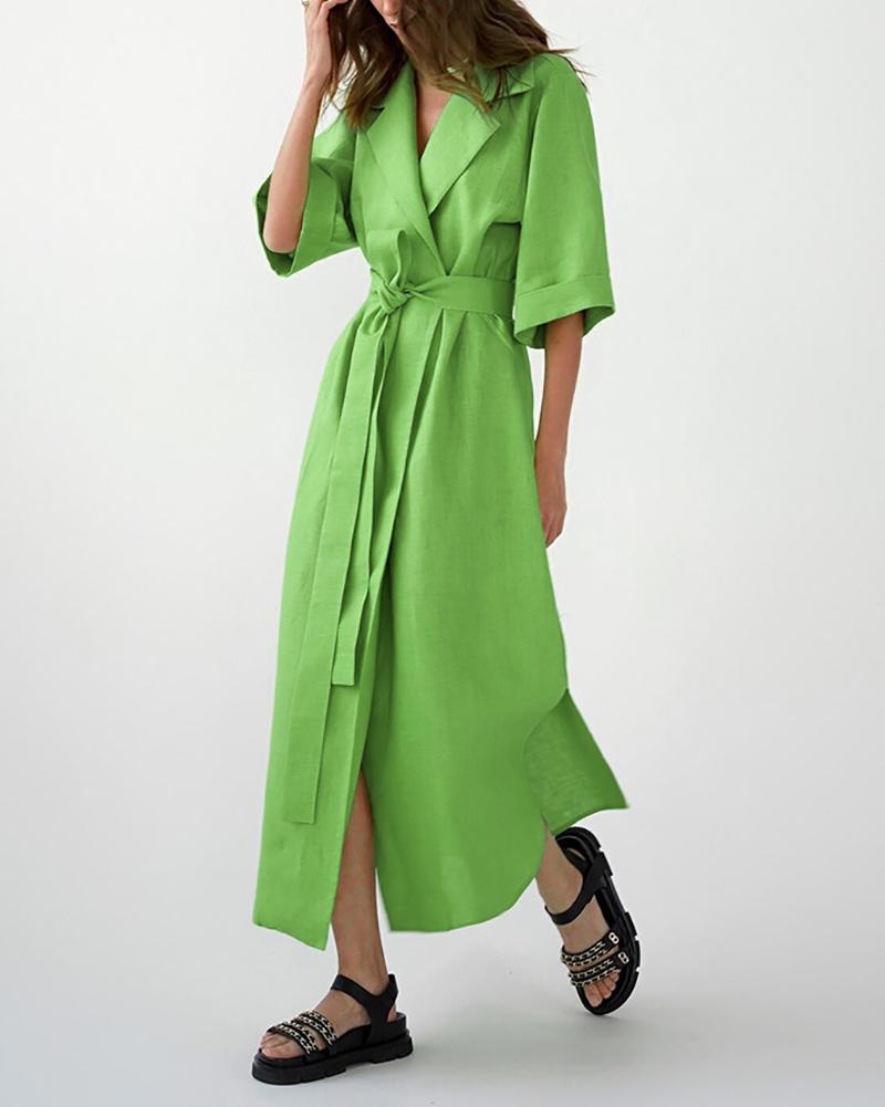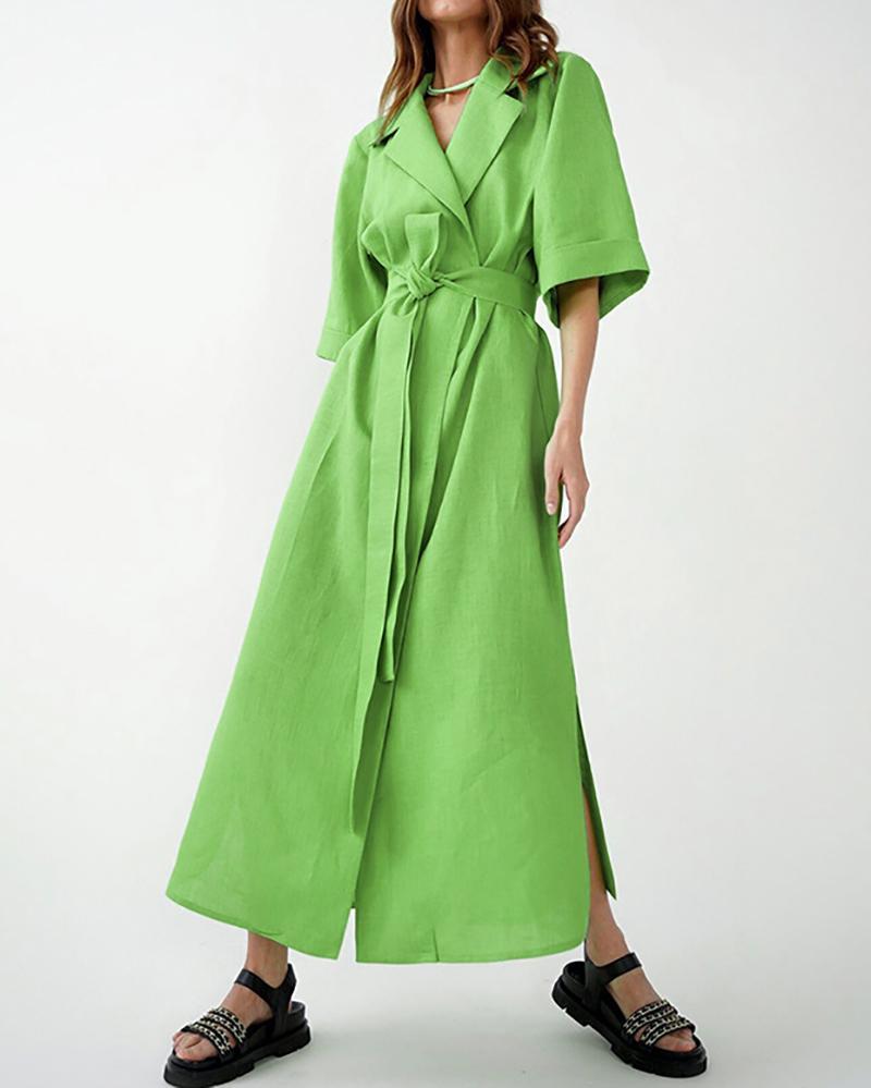 Product Name Sleek Lapel A-Line Dress