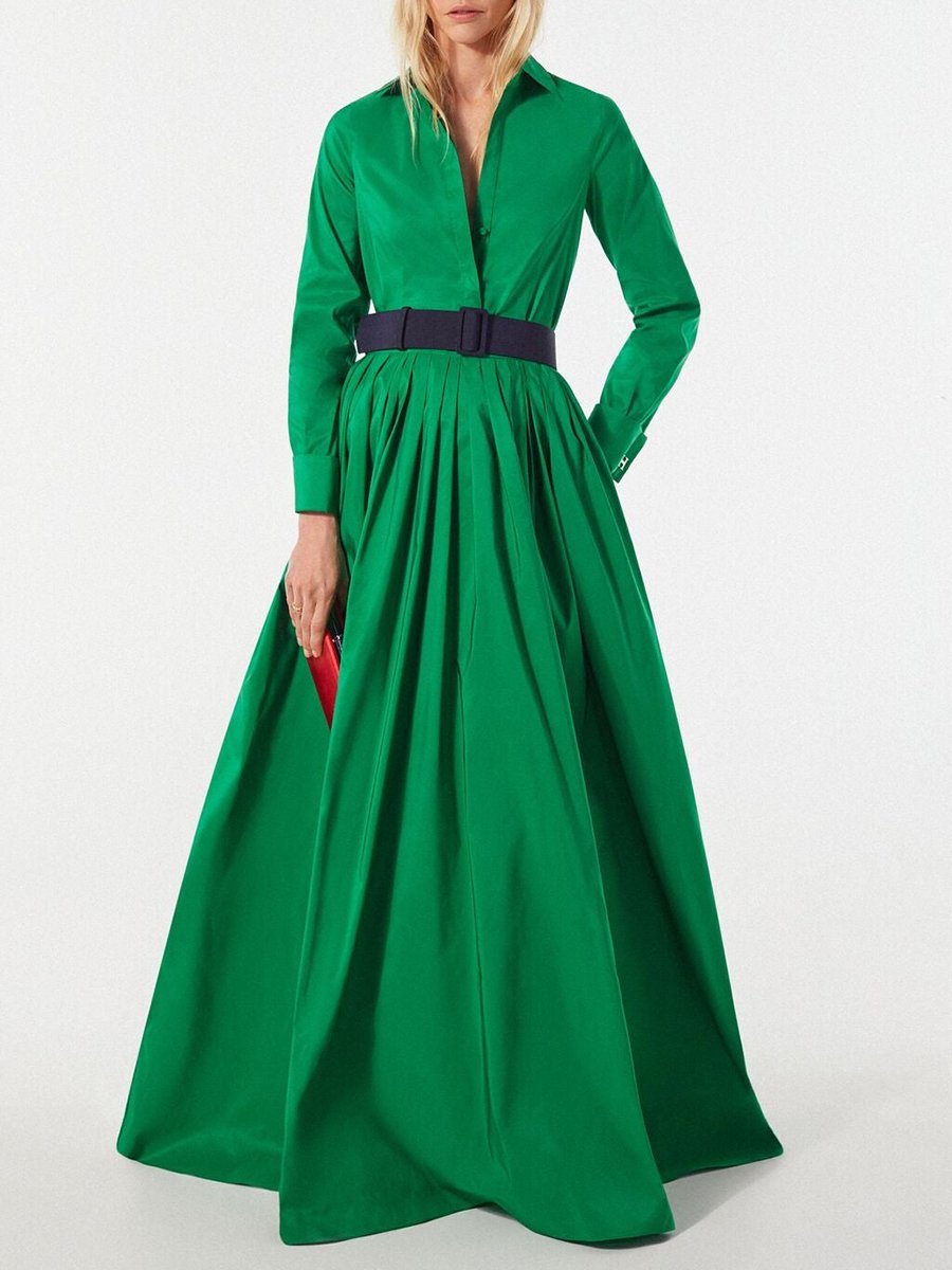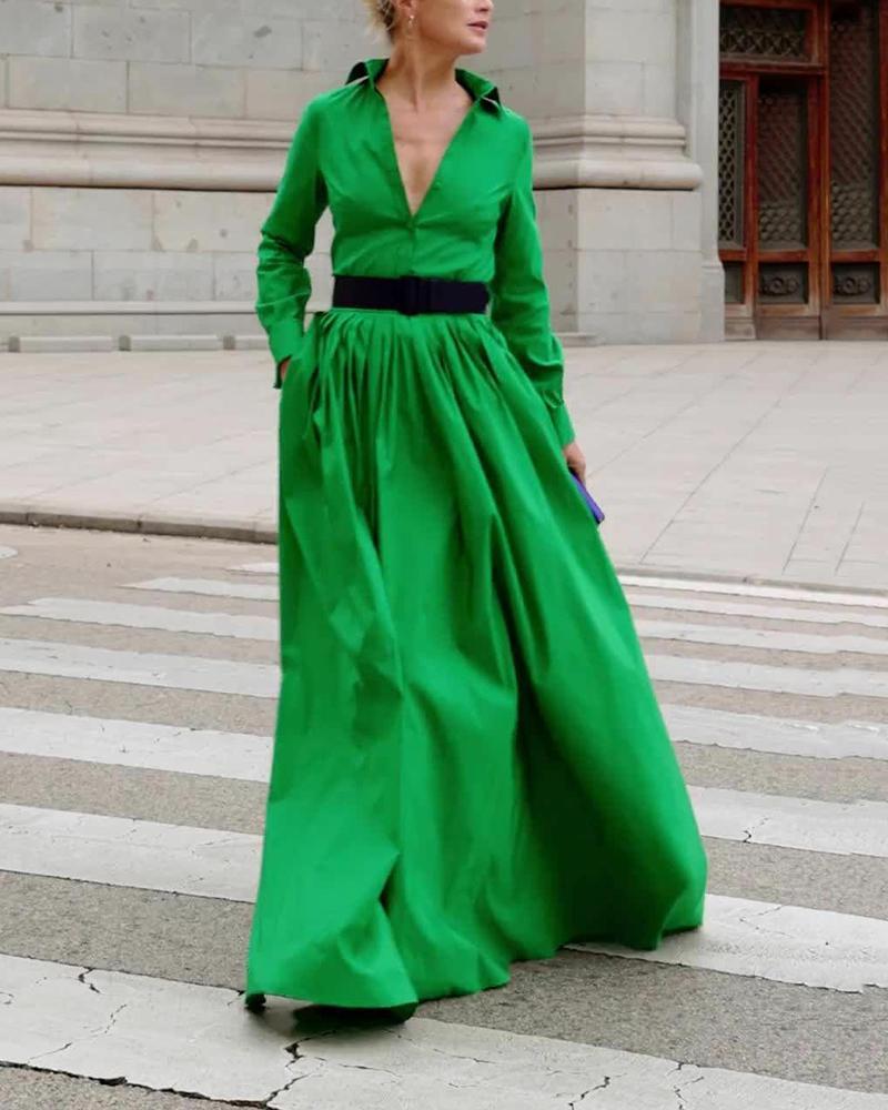 White V-neck Long-sleeved Simple Dress In The Long Section