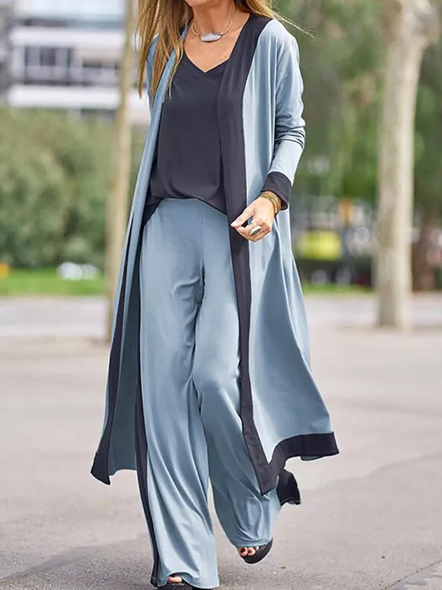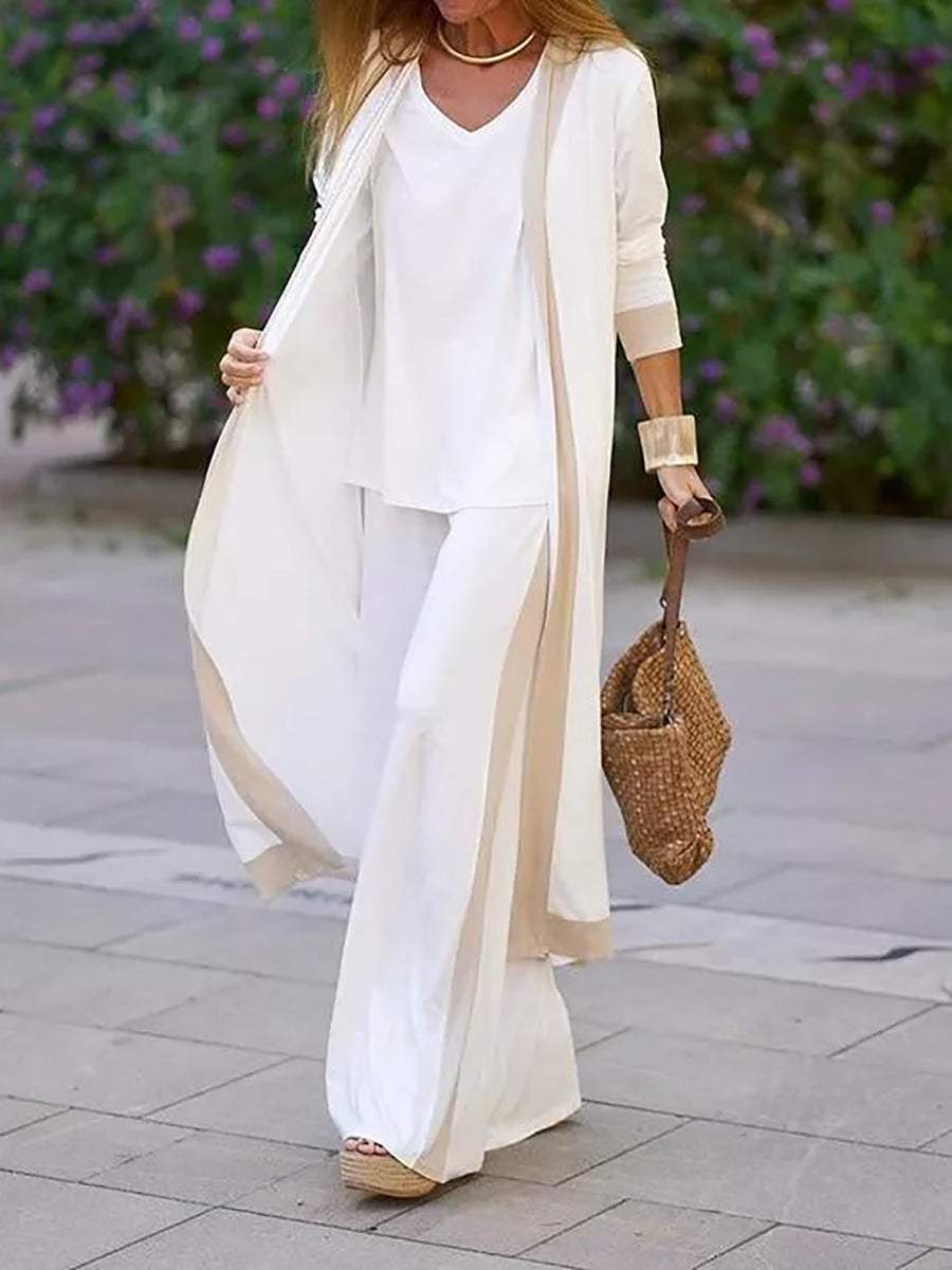 Product: Women Autumn Casual 3-Piece Set Color Contrast Kimono Camis&Pants Suit
